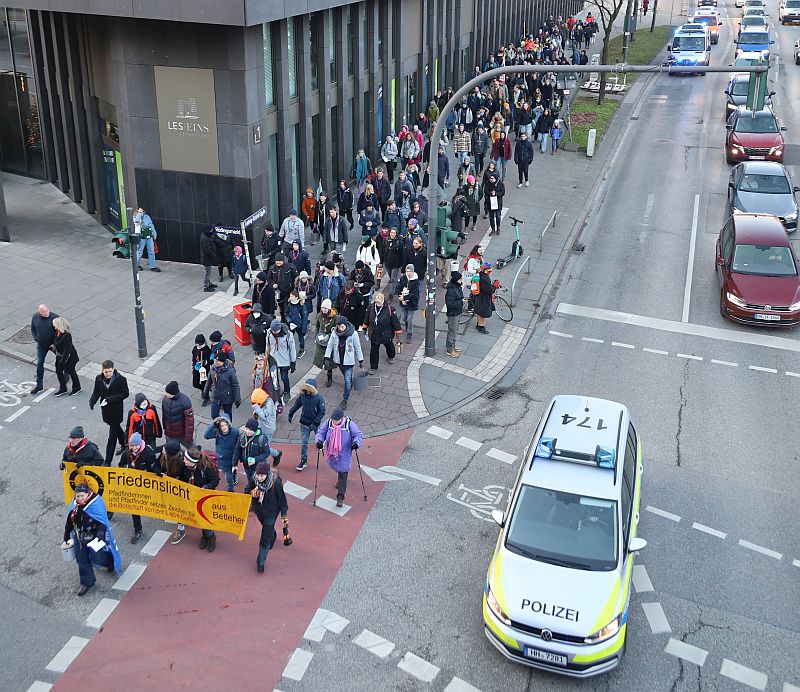 Pünktlich am dritten Advent ist auch dieses Jahr das Friedenslicht aus Bethlehem wieder via Wien in Hamburg angekommen. Vor dem Hauptbahnhof konnten es die ganz Eiligen abholen. Danach wurde es nach Andachten an der Hauptkirche St. Michelis, Im Innenhof des Rathauses und schließlich vor dem Dom, wo es Erzbischof Heße entgegennahm, verteilt. Viele zogen mit dem Licht von St. Michaelis über das Rathaus bis zum Dom und zeigten der Öffentlichkeit, wofür wir Pfadfinder stehen.