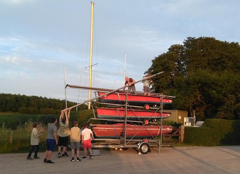 In der zweiten Woche packen wir alles auf die Boote und nehmen Kurs auf Schleswig und rasten entlang des Schlei-Ufers . Wir sind mit 9 Segeljollen unterwegs. Begleitet wird die Gruppe von Toni, Niels und Roland aus dem Seepfadfinder AK.