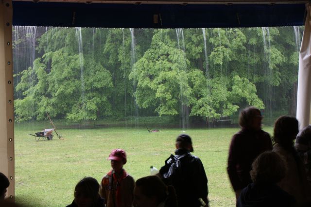 Nachdem es heute morgen den ersten Regenschauer des Zeltlagers gegeben hat, hörte es rechtzeitig zum großen Einpacken und Einsammeln auf zu regnen! Alle sind beschäftigt, das Material auf den richtigen Sammelplatz zu legen, damit es gleich in die Busse verladen werden kann. Nach der Schlußrunde gehen 4 schöne Tage zu Ende und alle Teilnehmer werden mit vielen Erinnerungen nach Hause zurückkehren.